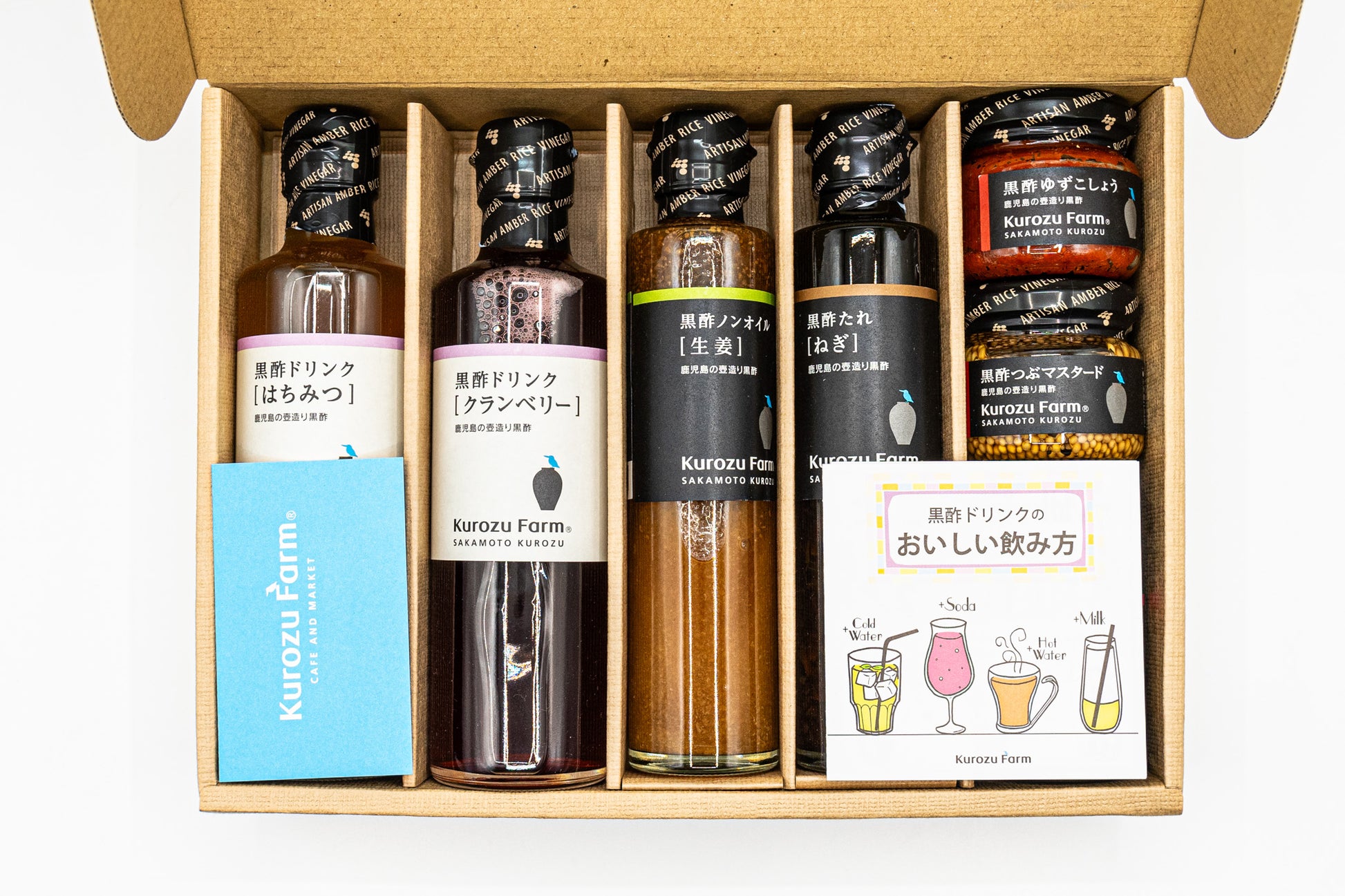 This curated selection includes a variety of Kurozu-based products for both drinking and cooking: