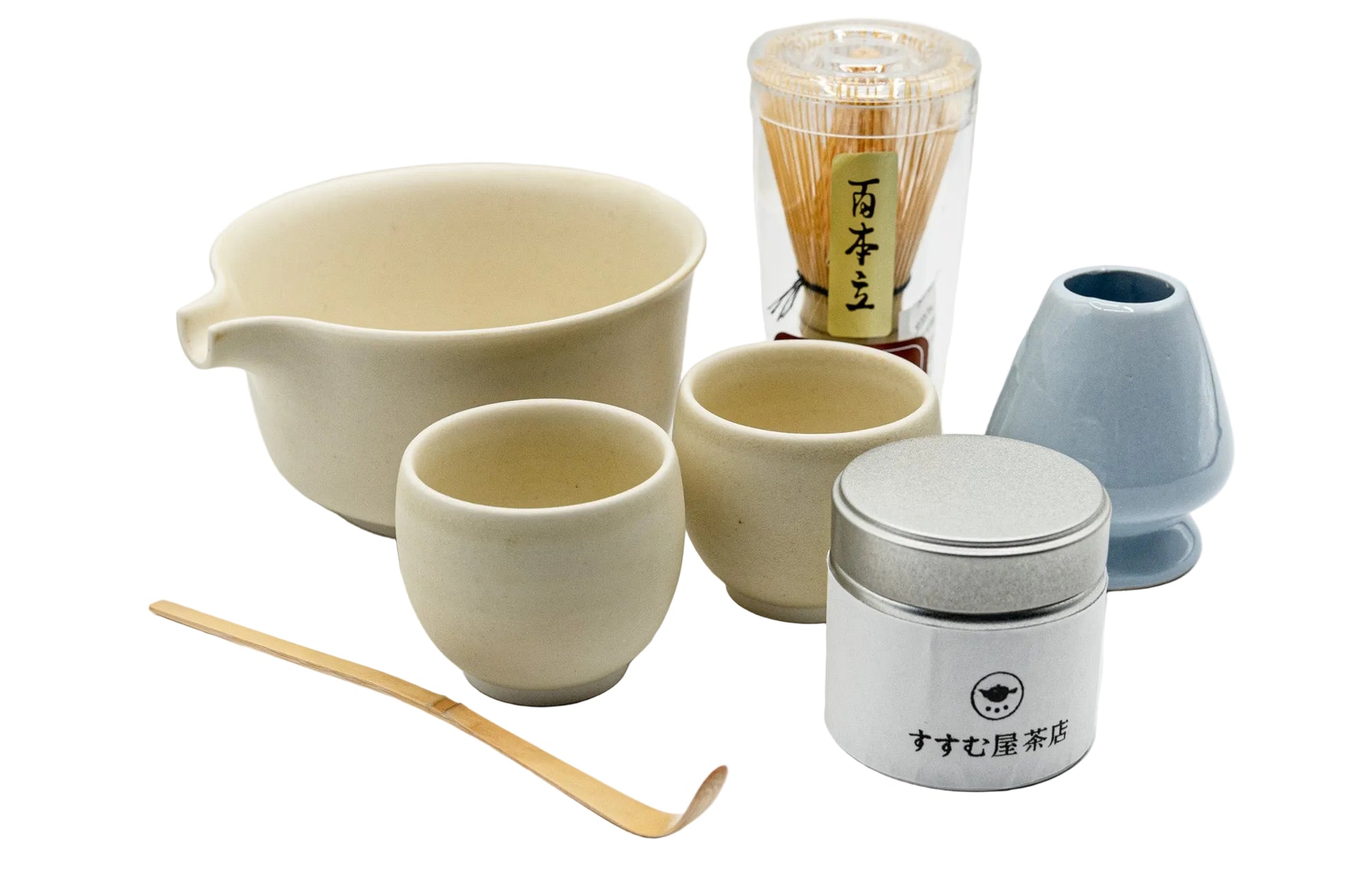 סט זה, שנוצר על ידי סוסומויה צ'אטן (すすむ屋茶店) - חנות תה יפנית מכובדת המתמחה בתה איכותי מקגושימה - משלב מאצ'ה איכותית וכלי תה מסורתיים המשמשים להכנת תה יפני.